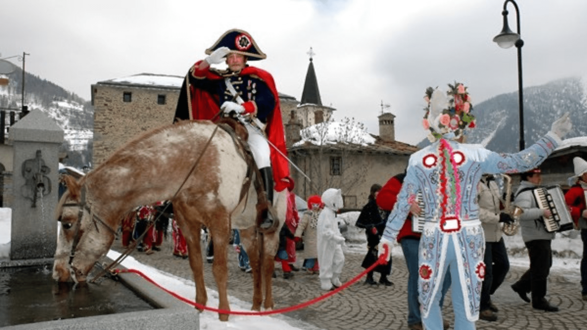 Nelle Alpi italiane uno dei Carnevali più affascinanti d’Italia si svolge nella Coumba Freida tra i comuni valdostani di Bionaz, Oyace, Valpelline e Doues, dove le colorate e decorate maschere delle Landzetteindossano uniformi ispirate ai soldati napoleonici. Poco lontano, a Sampeyre (Valle Varaita, Piemonte), si svolge ogni cinque anni la Baìo, una rappresentazione storica che rievoca la cacciata dei Saraceni e un rito ciclico che coinvolge l’intera comunità.