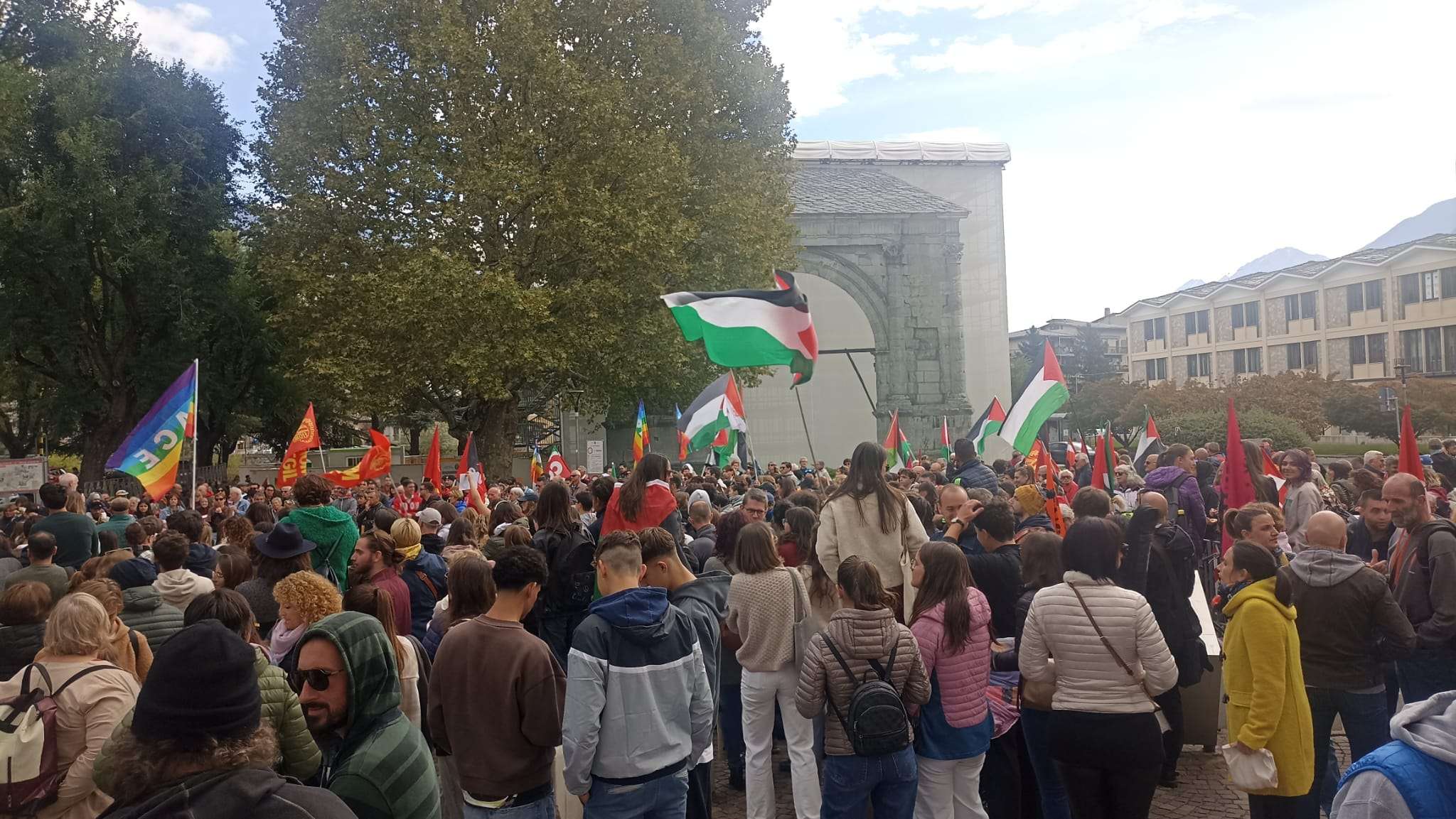 Anche ad Aosta un momento dello sciopero per la flottiglia e Gaza, il 3 ottobre 2025 (c) Nos Alpes