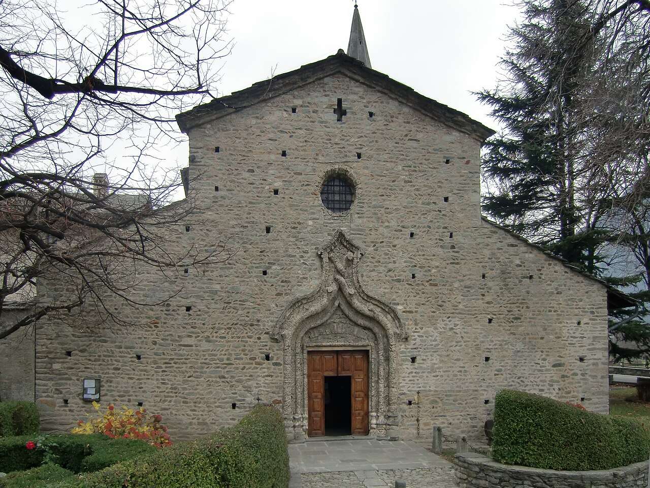 Au XVe siècle, l’église subit d’importantes transformations, liées à Georges de Challant, prieur de la collégiale de Saint-Ours à Aoste, figure centrale de la classe dirigeante de l’époque. Une couverture avec des voûtes en croisée d’ogives fut construite et le portail rénové avec une décoration en tuf : un arc sculpté, qui culmine en un entrelacement de deux troncs d’arbres. Ce symbole, de lecture héraldique, représenterait l’union entre deux familles locales : une baronne des Vallaise, seigneurs d’Arnad, et un comte des Challant d’Issogne, neveu de Georges de Challant.